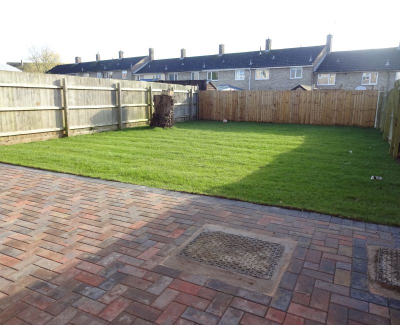 Front & rear gardens with garage within a block.