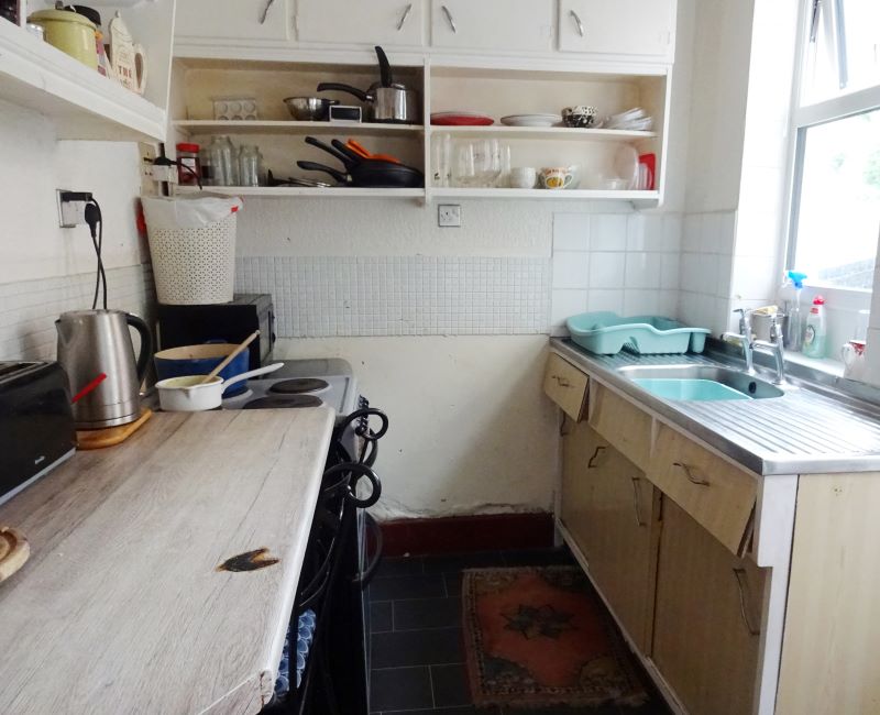 Front reception room, dining room, kitchen.