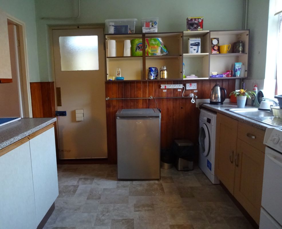 Entrance hall, lounge, dining room, kitchen, inner lobby with two stores and W.C.