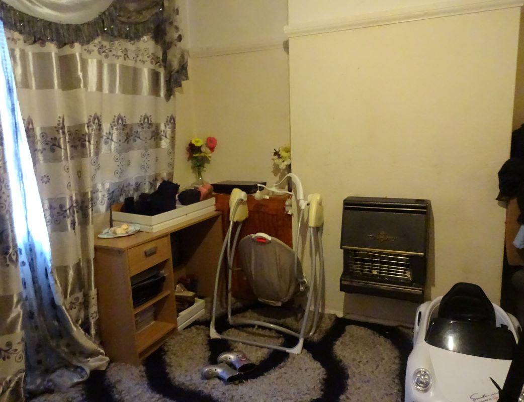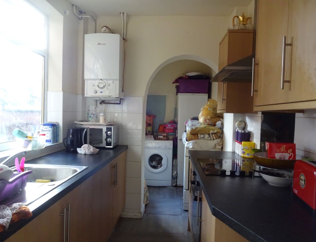 Front reception room, living room, kitchen.