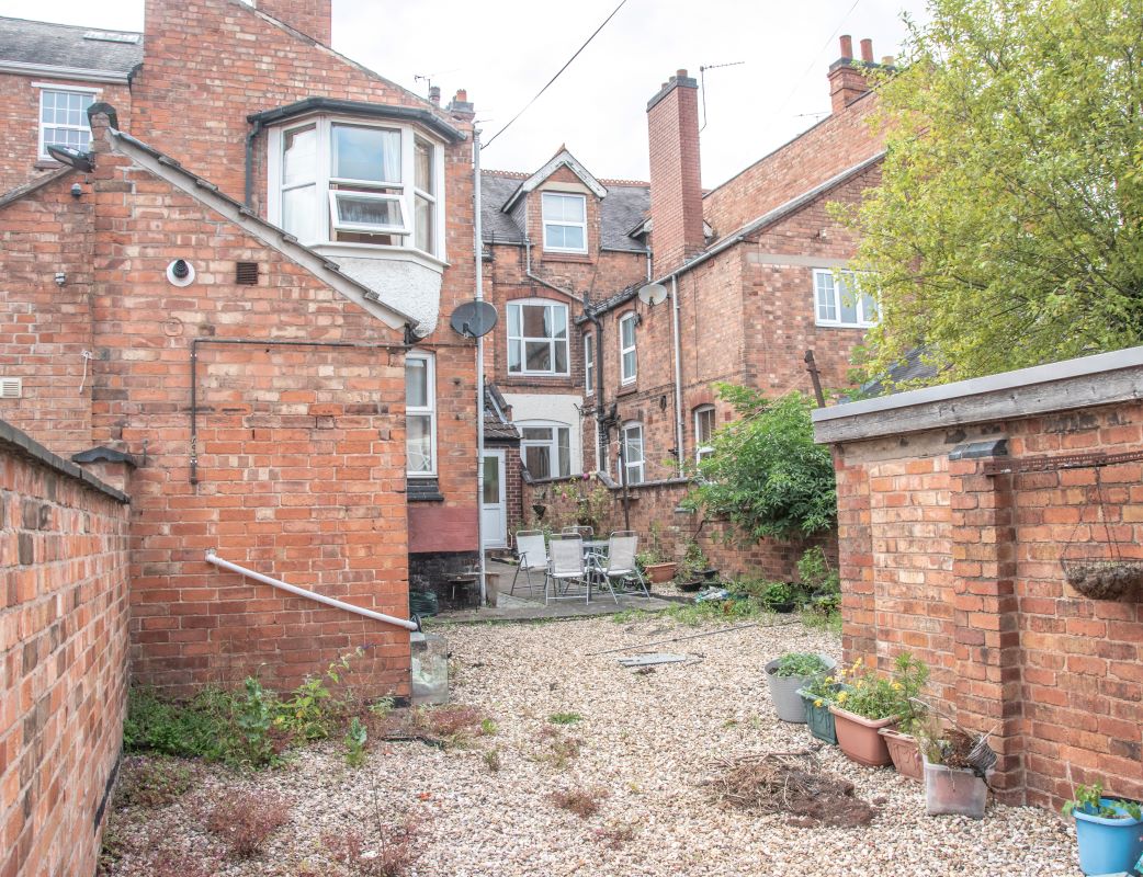 Front forecourt and enclosed rear yard.