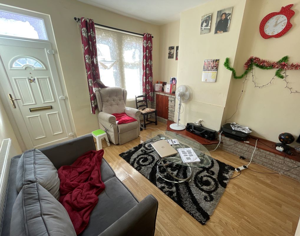 Front reception room, living room, kitchen.