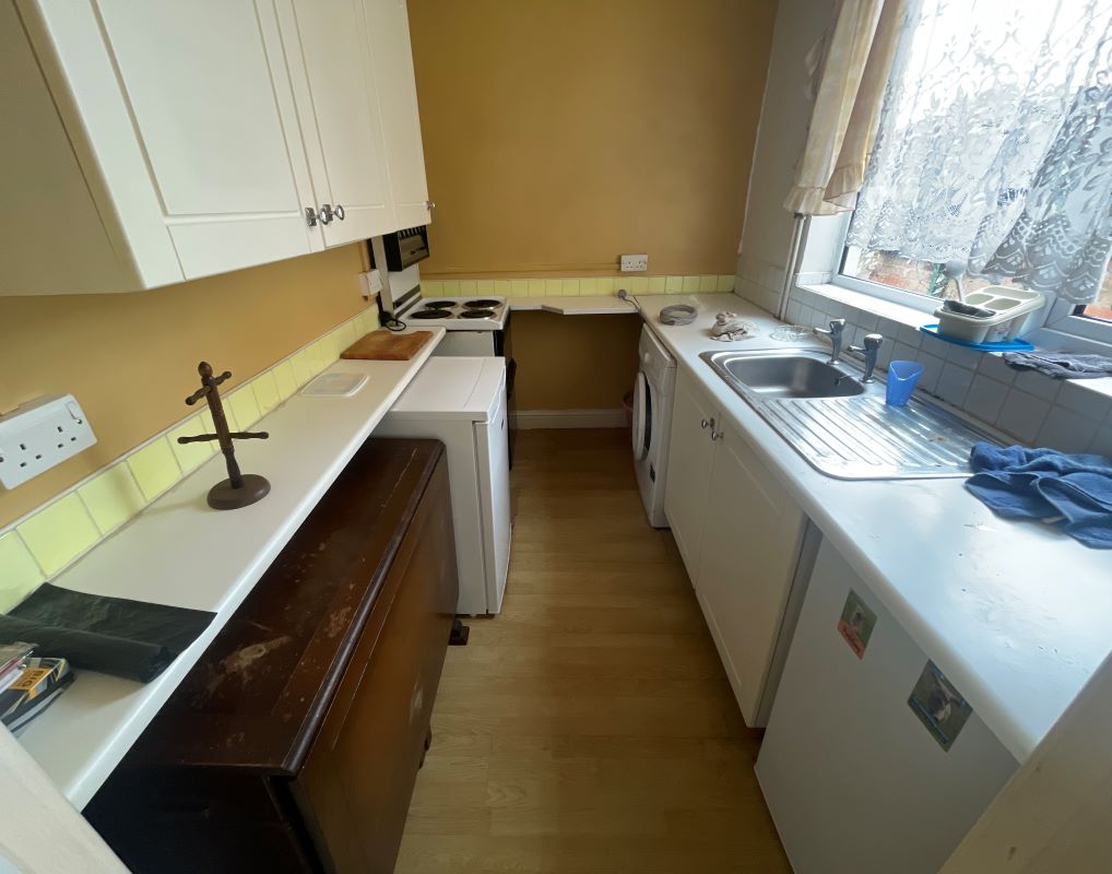 Front reception room, living room, kitchen.