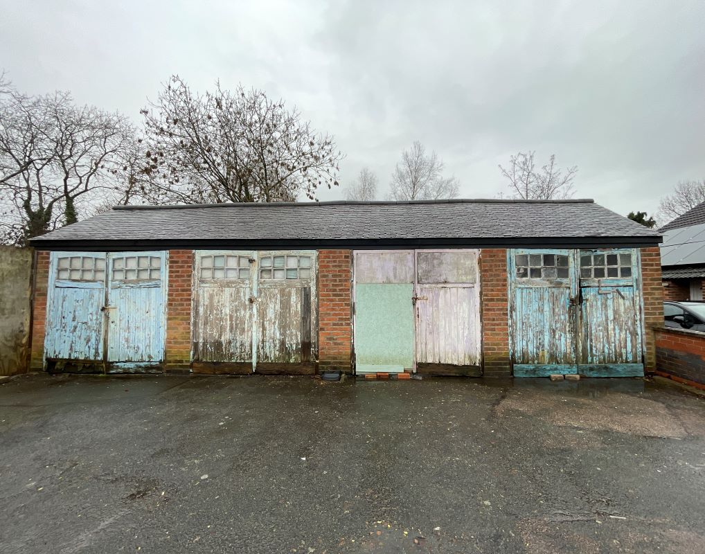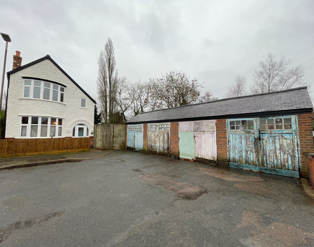 Front garden area providing off road parking, four single garages with separate access. Private rear garden with potential for further development.