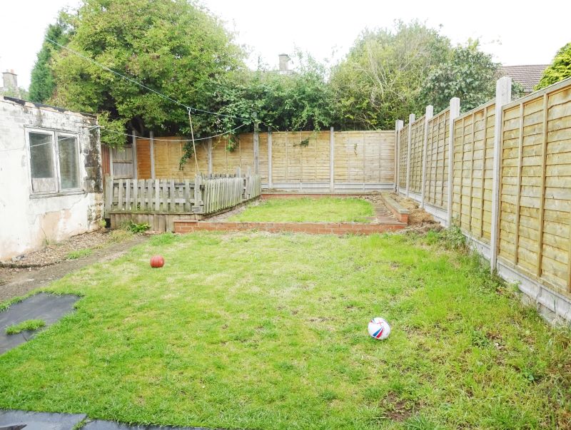 Front garden having car standing space, rear garden being part lawn part gravel stone with decking area.