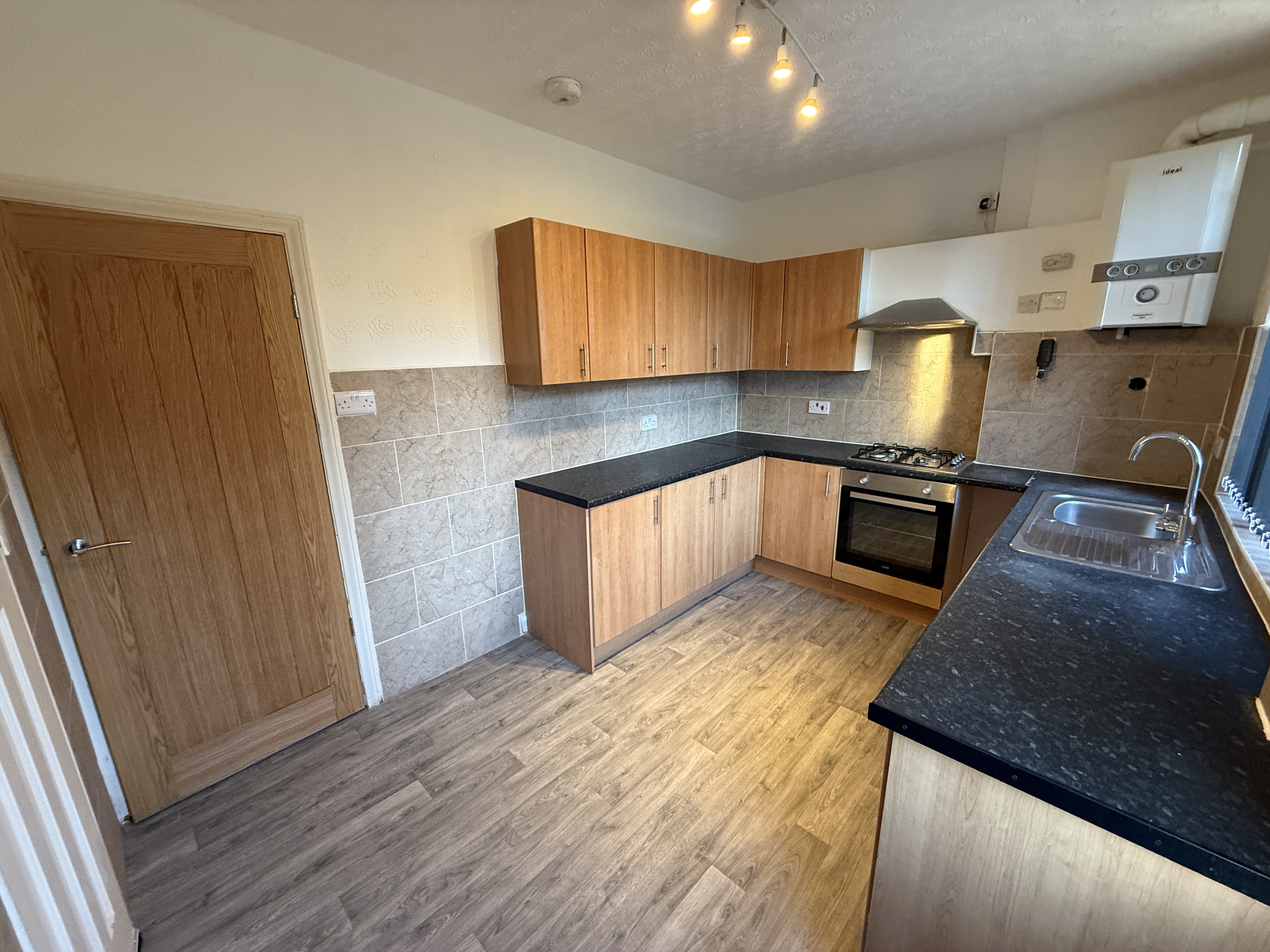 Upon entering, an entrance area leads into a lounge and good sized fitted kitchen which provides access to a large rear garden.