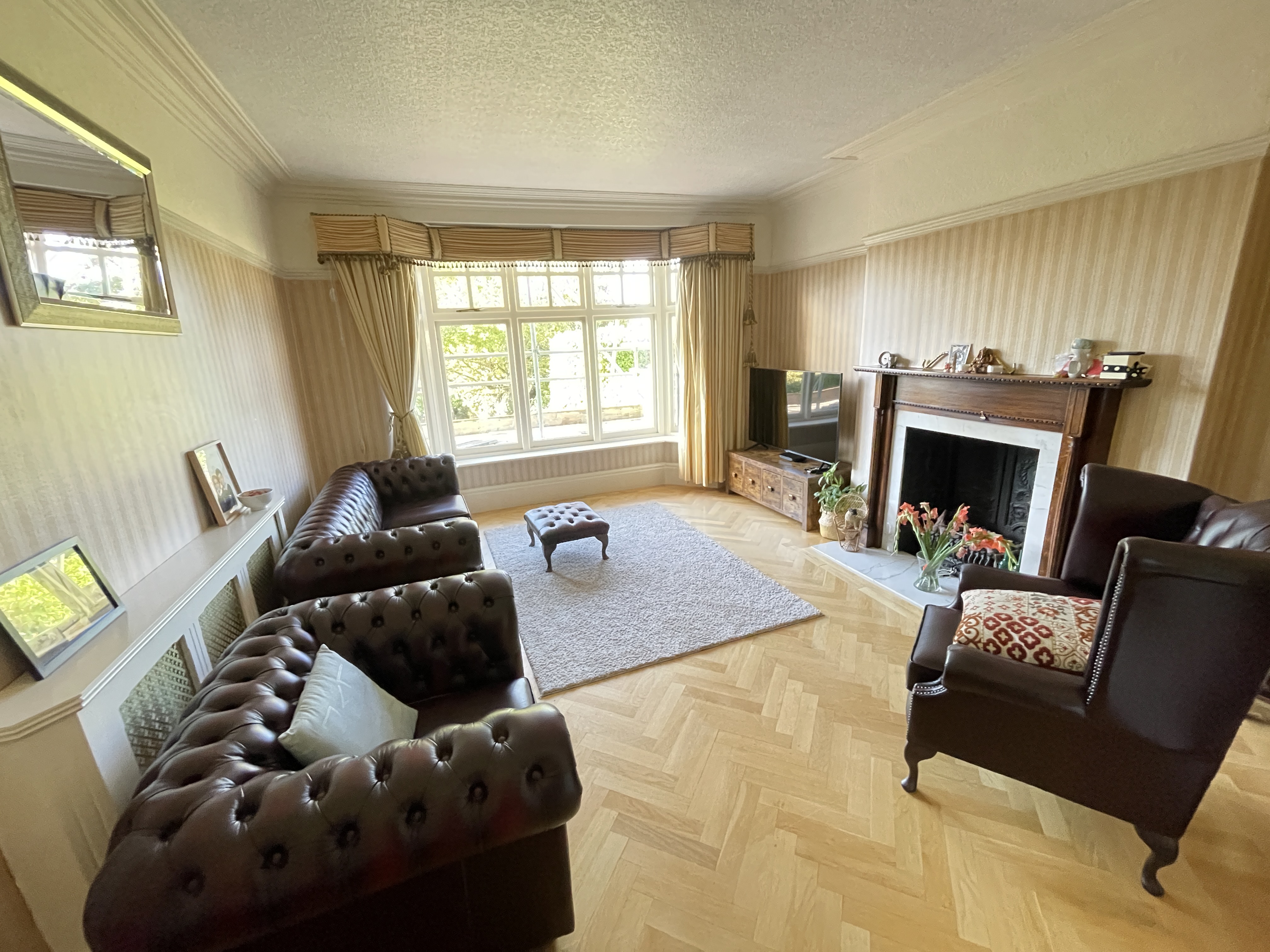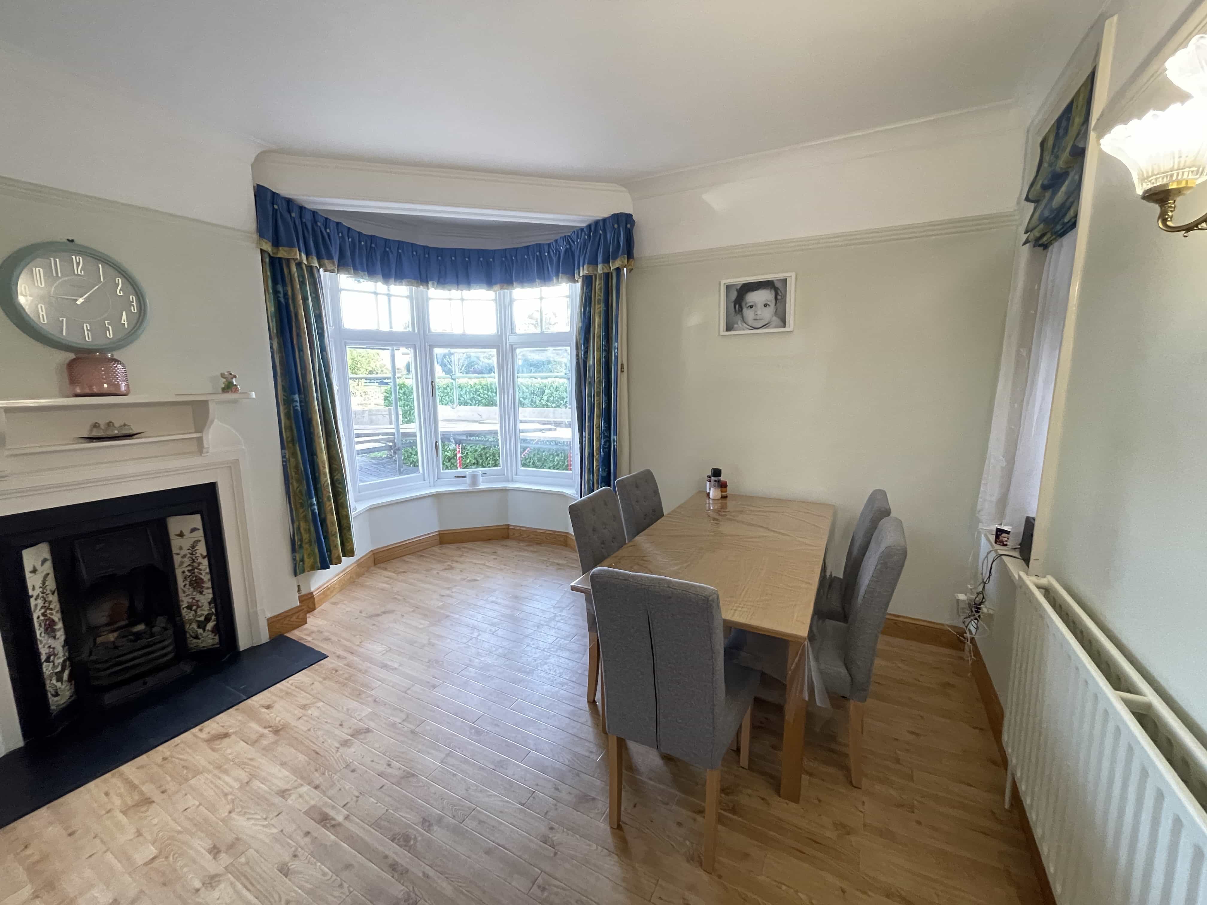 Dining Room – UPVC double glazed bay windows, power points, gas central heating radiators, decorative lighting, wood effect flooring.