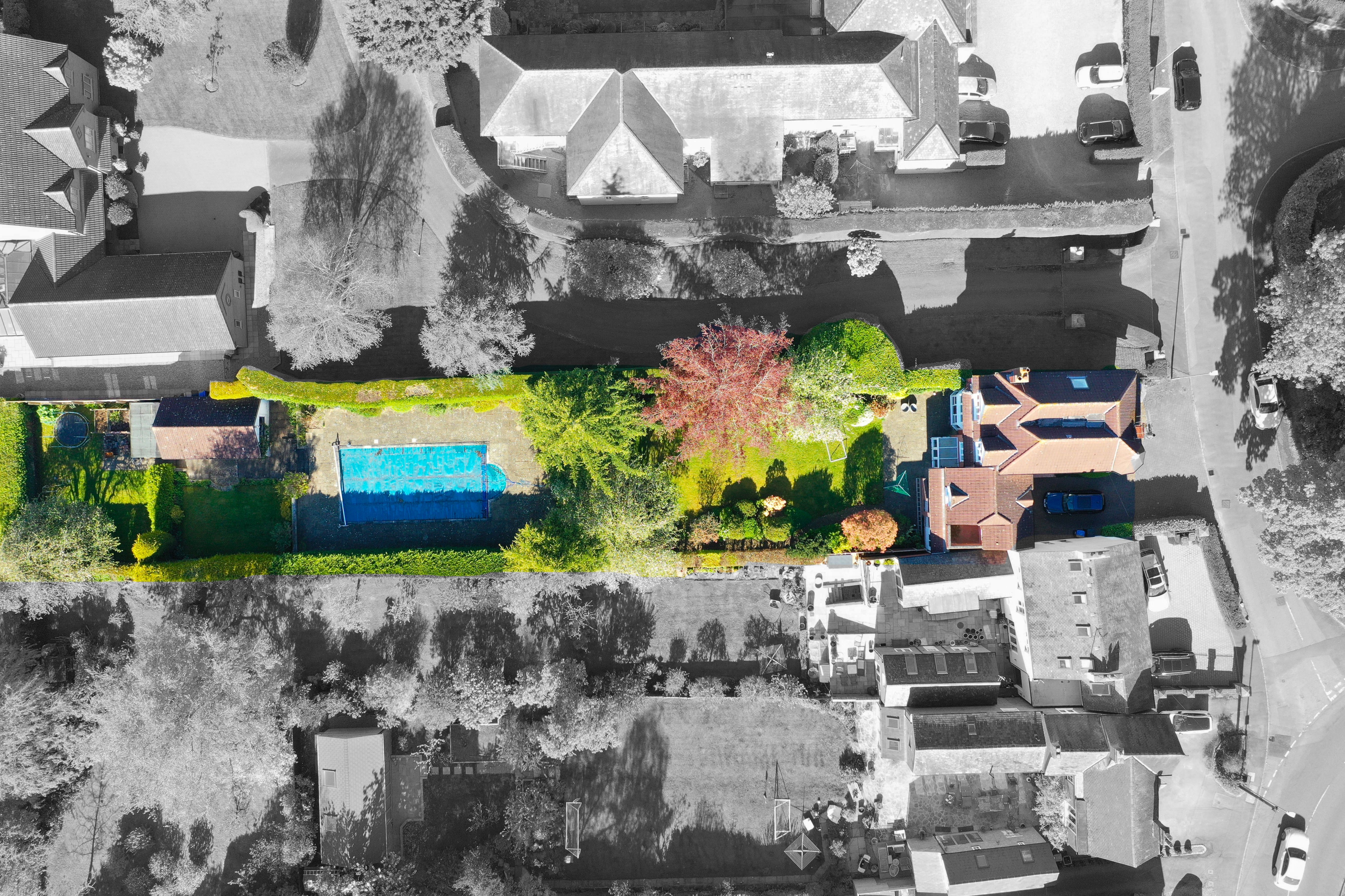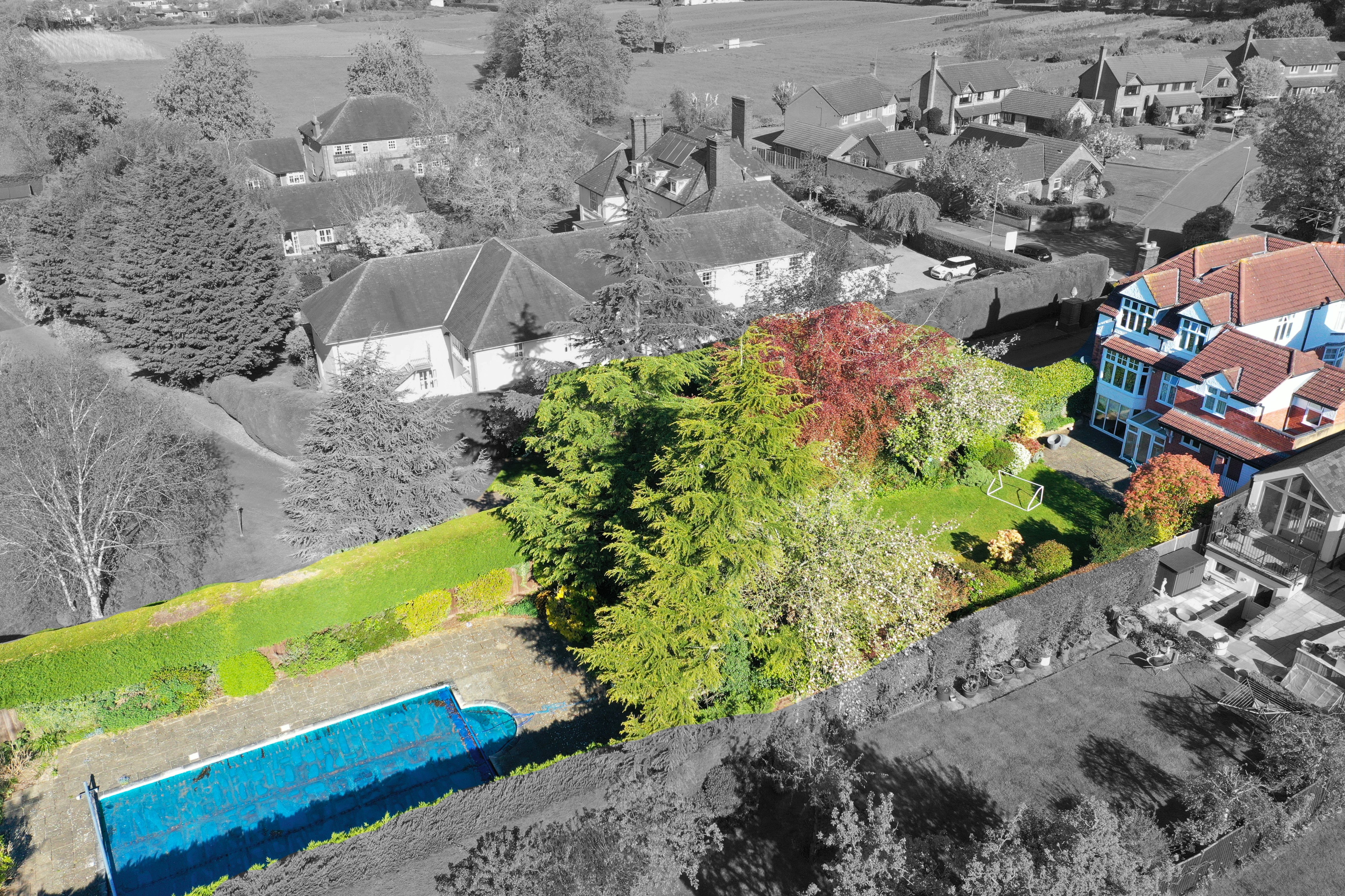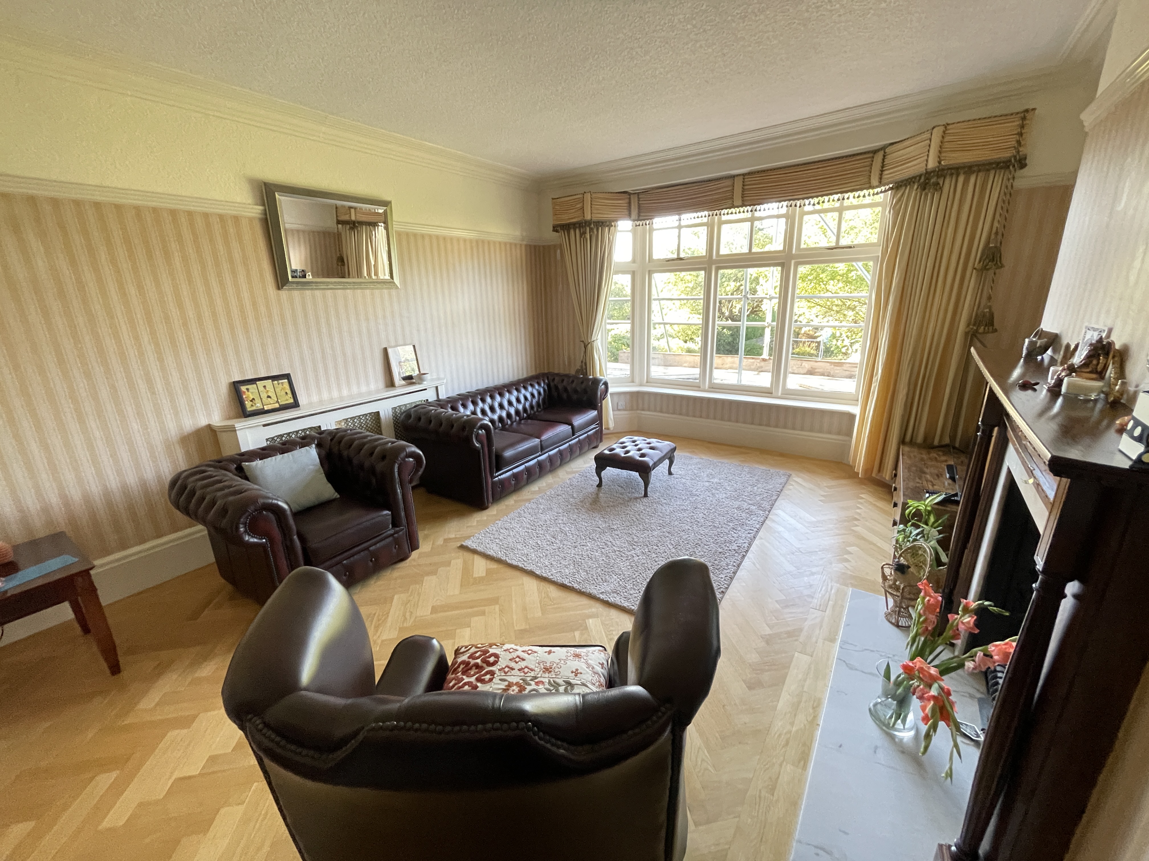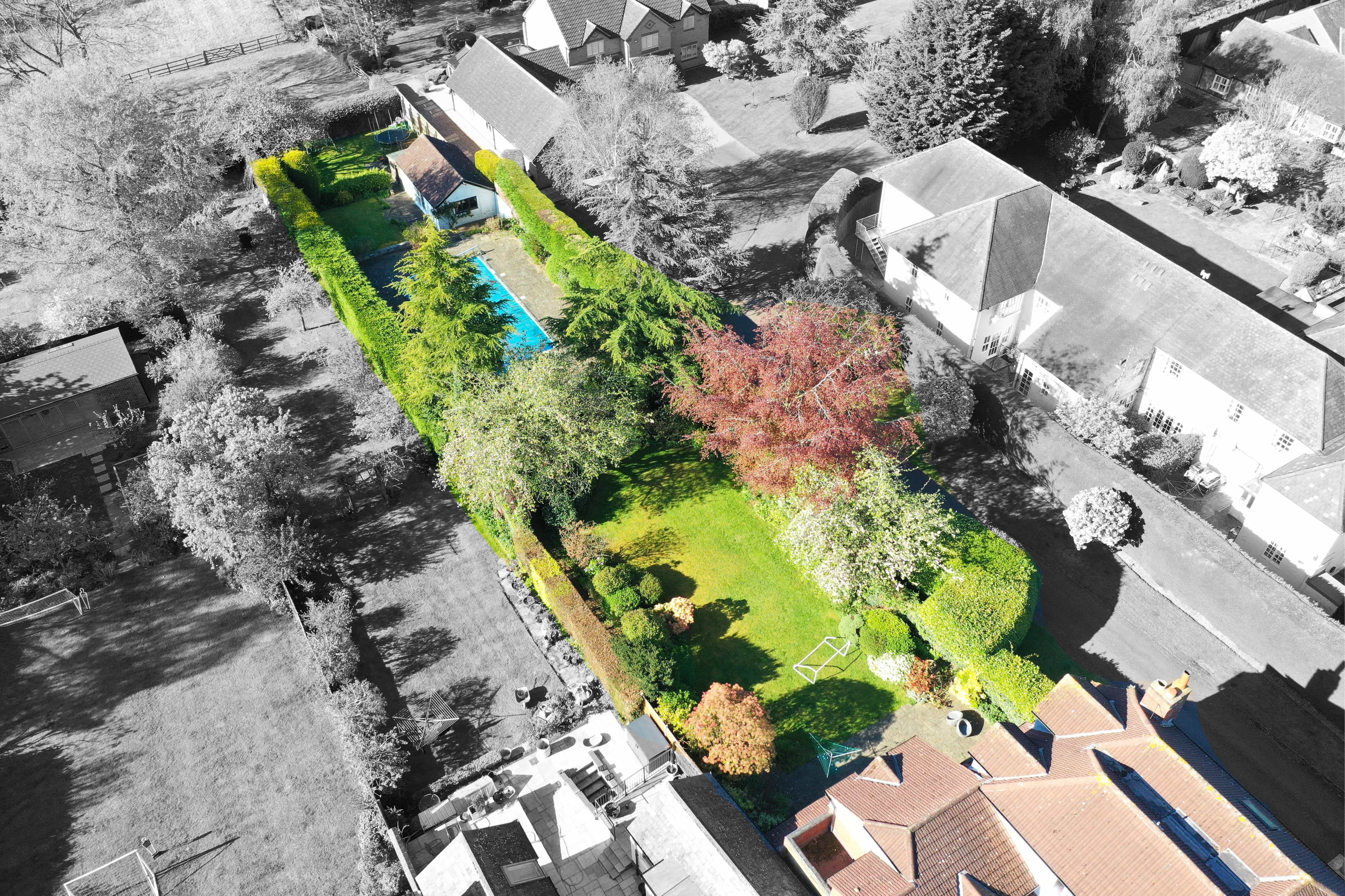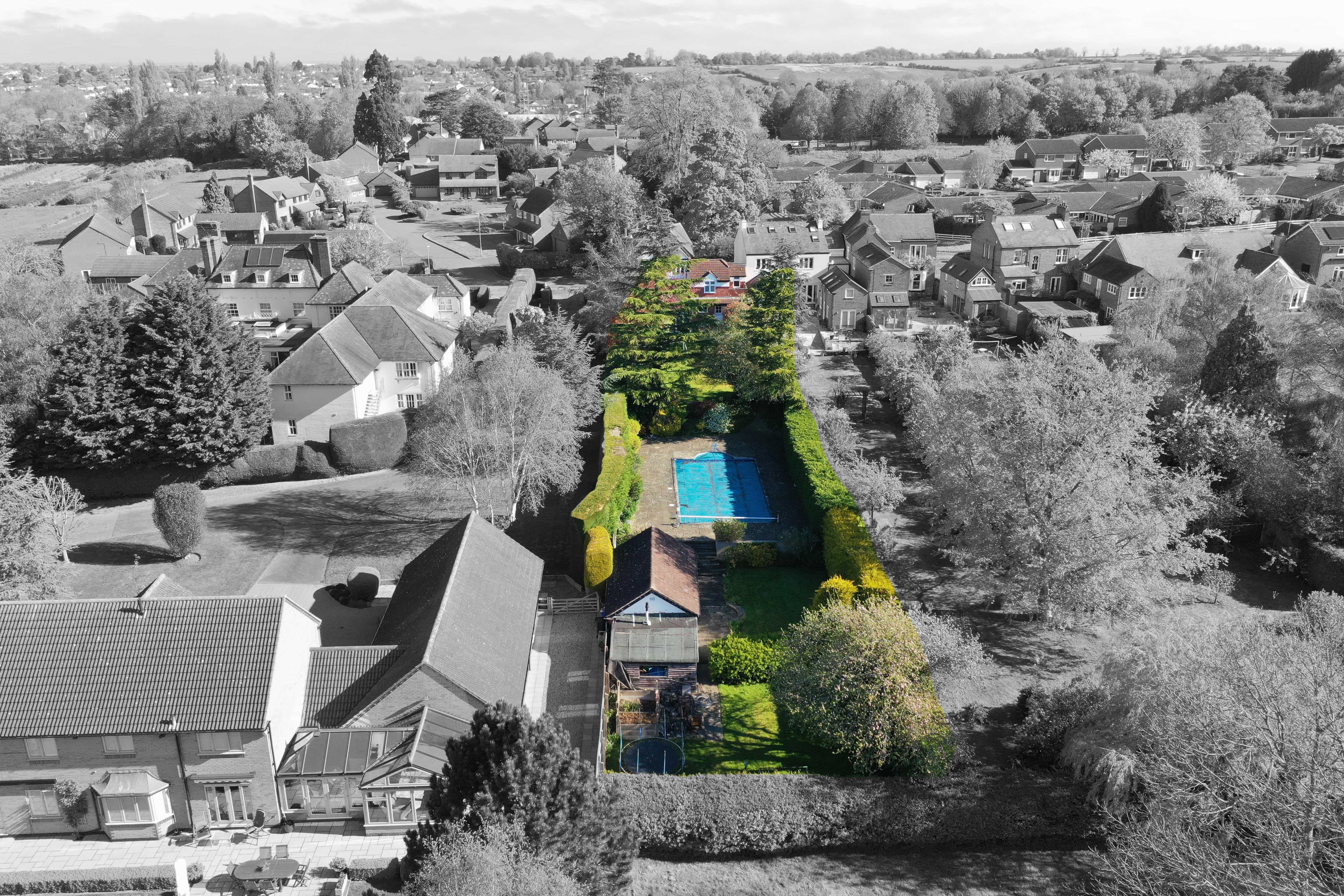 The home enjoys a generously sized rear garden, mainly laid to lawn and beautifully maintained, with a summerhouse featuring a shower room and swimming pool - perfect for outdoor entertaining and family use.