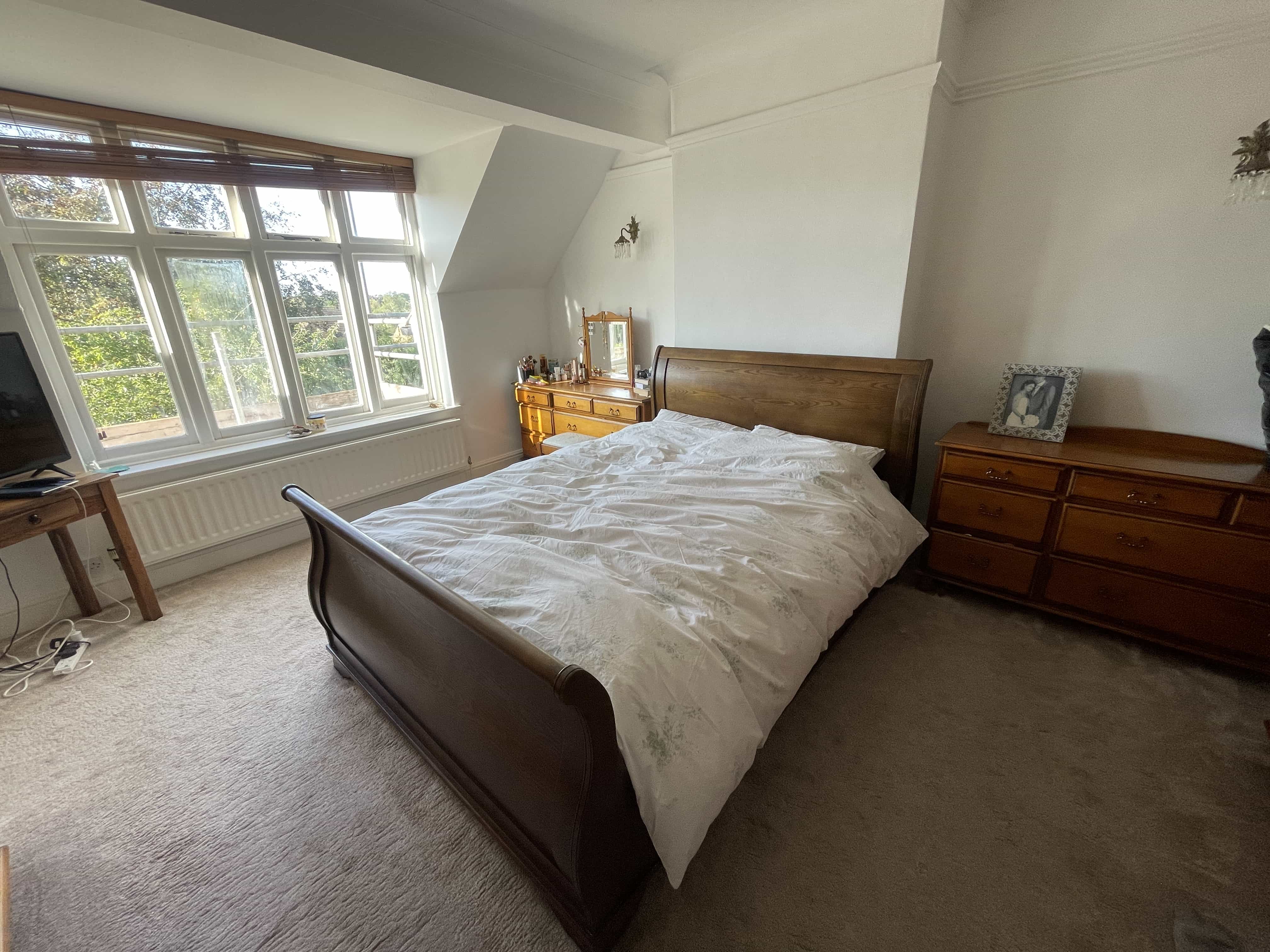 Bedroom - carpet flooring, UPVC double glazed window, gas central heating radiator, power points, suspended lighting.