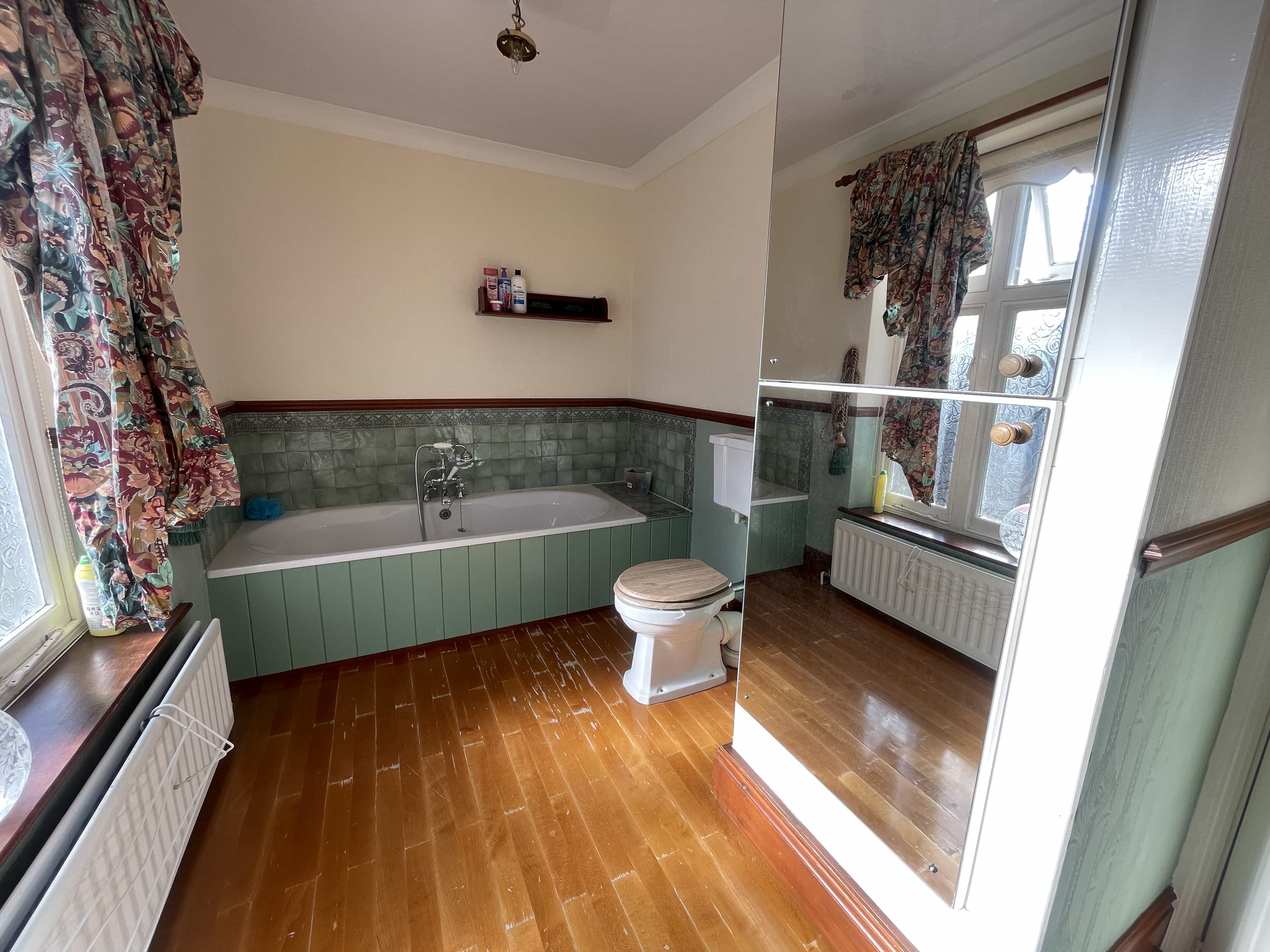 Family room - Wood effect flooring, UPVC double glazed bay windows, gas central heating radiator, power points