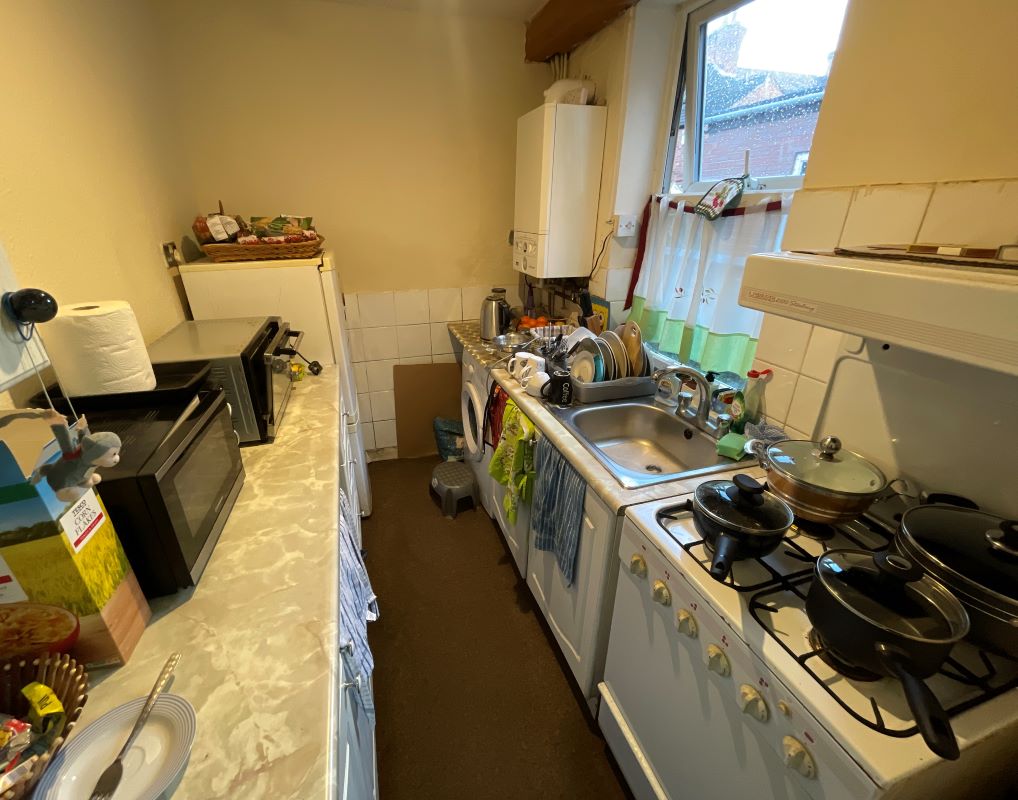 Front reception room, living room, kitchen.