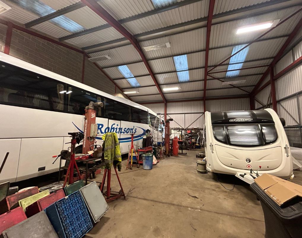 The site has a substantial, approximately, 25 year old steel portal frame construction building, incorporating offices on two storeys, with the usual services, and a workshop with two bays with roller doors. The workshop has high eaves. The site is served by a septic tank which was emptied at the beginning of March.